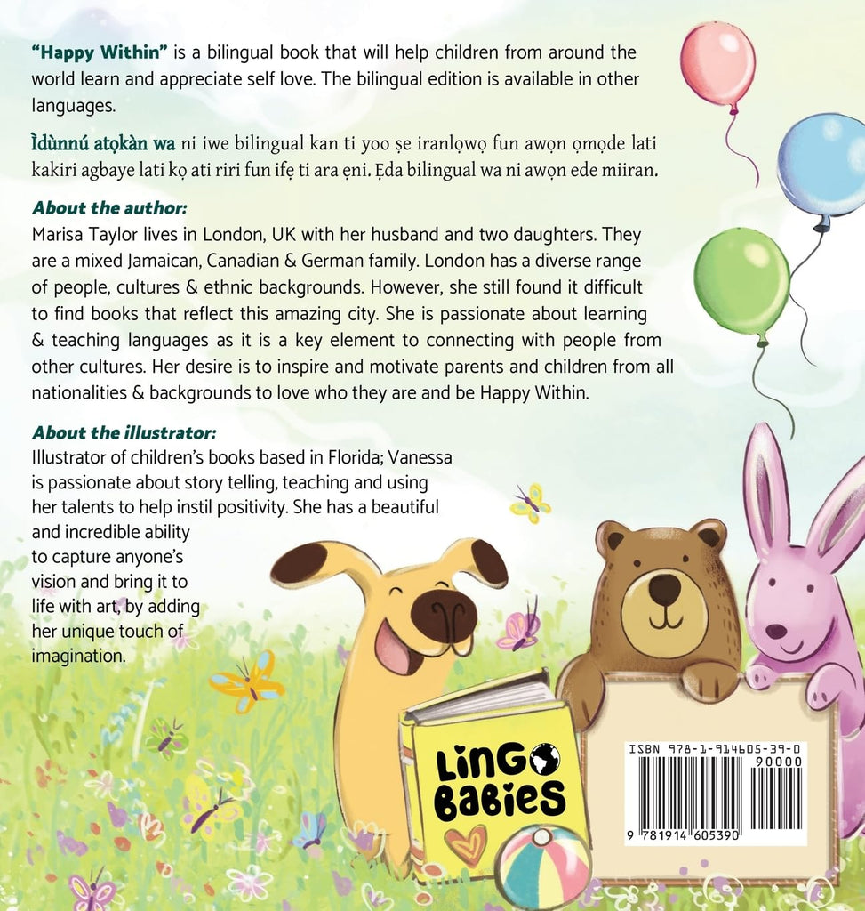 Happy within is a bilingual book that will help children from around the world learn and appreciate self-love & diversity. The bilingual edition is available in other languages.