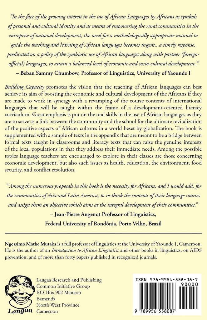 Building Capacity promotes the vision that the teaching of African languages can best achieve its aim of boosting the economic and cultural development of the Africans if they are made to work in synergy with a revamping of the course contents of international languages that will be taught within the frame of a development-oriented literacy curriculum. Great emphasis is put on the oral skills in the use of African languages as they are to serve as a link between the community and the school for the ultimate revitalization of the positive aspects of African cultures in a world beset by globalization. The book is supplemented with a sample of texts in the appendix that are meant to be a bridge between formal texts taught in classrooms and literacy texts that can raise the genuine interests of the local populations in that they address their immediate needs. Among the possible topics language teachers are encouraged to explore in their classes are those concerning economic development.