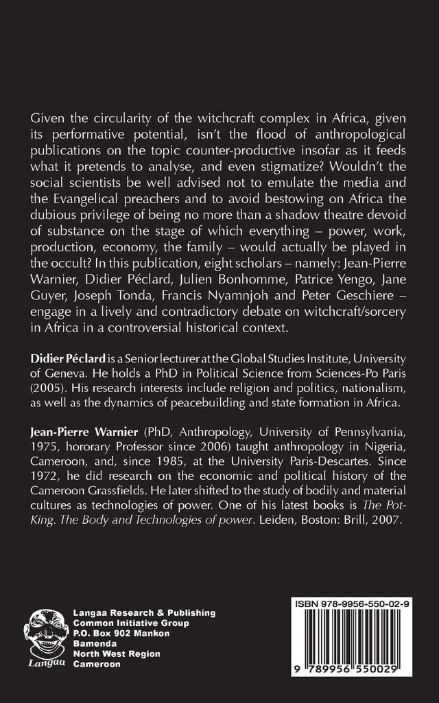 Given the circularity of the witchcraft complex in Africa, given its performative potential, isn't the flood of anthropological publications on the topic counter-productive insofar as it feeds what it pretends to analyse, and even stigmatize? Wouldn't the social scientists be well advised not to emulate the media and the Evangelical preachers and to avoid bestowing on Africa the dubious privilege of being no more than a shadow theatre devoid of substance on the stage of which everything - power, work, production, economy, the family - would actually be played in the occult? In this publication, eight scholars - namely: Jean-Pierre Warnier, Didier Péclard, Julien Bonhomme, Patrice Yengo, Jane Guyer, Joseph Tonda, Francis Nyamnjoh and Peter Geschiere - engage in a lively and contradictory debate on witchcraft/sorcery in Africa in a controversial historical context.