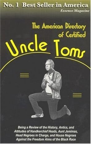 "A Daring Rebuke to Multicultural White White Supremacists," book review by Vincent Thomas, June 27, 2002: The American Directory of Certified Uncle Toms is a well-documented, scholarly, and witty critique of the most stridently "Eurocentric" elements of the Black community. The book clearly distinguishes Black interests (economic, political, and creative Black self-determination) from the practices of Black Eurocentrists (undermining grassroots Black leadership, justifications for white supremacy, artistic portrayals of black pathology for financial gain, and fronting anti-Black agendas with no accountability to Black constituencies). Finally, we have a publication that courageously critiques white liberalism, black conservatism, elitism in the black upper and middle classes, and an inordinate Zionist influence (the section where Ron Dellums was forced to have a family meeting because he feared a political backlash for not supporting aid to Israel was especially telling). Whether you agree or disagree with all entries (Dubois and Washington both with five stars!), The American Directory of Certified Uncle Toms is an important work.