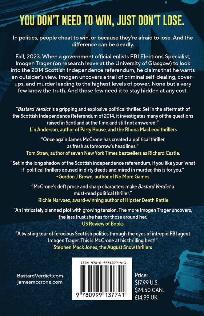 A second referendum on independence looms, and a Scottish official enlists elections specialist Imogen Trager, a by-the-numbers, if rarely by-the-book investigator, to look into irregularities in the 2014 Scottish Independence referendum. Imogen uncovers a trail of criminal self-dealing, cover-ups, and murder leading to the highest levels of power. None but a very few know the truth. And those few need it to stay hidden at any cost.