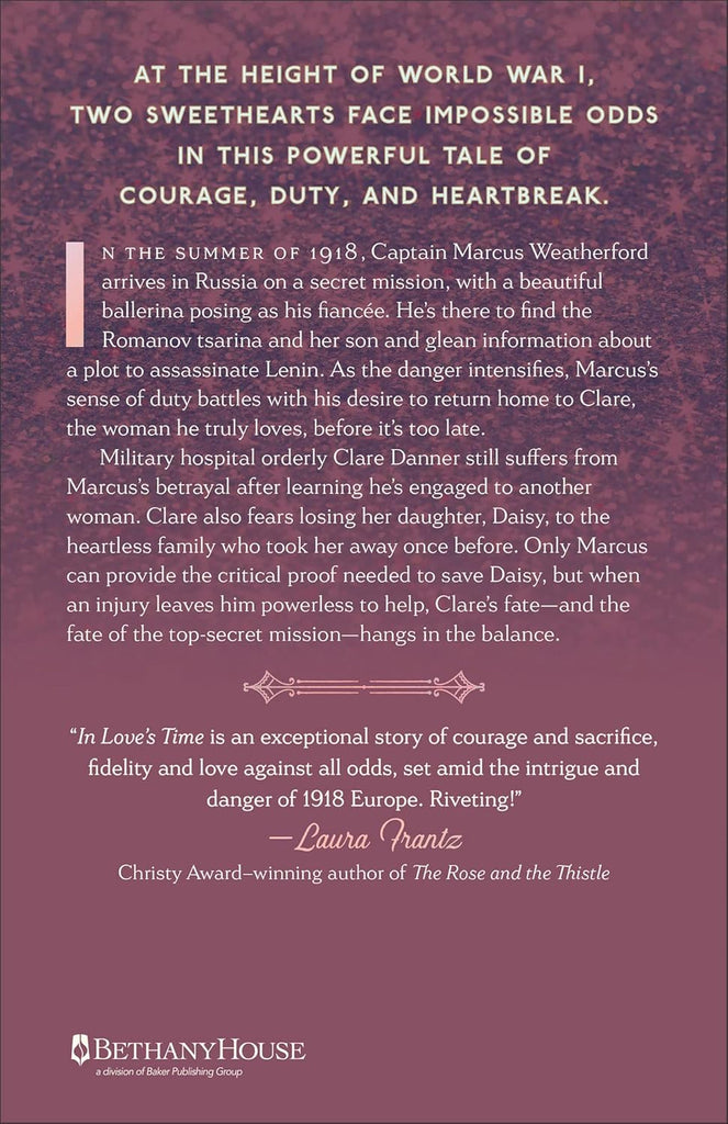"In Love's Time is an exceptional story of courage and sacrifice, fidelity and love against all odds, set amid the intrigue and danger of 1918 Europe. Riveting!"--Laura Frantz, Christy Award-winning author of The Rose and the Thistle