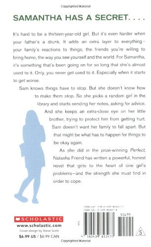 Natasha Friend is a Judy Blume for today -- clearly evident in this remarkable new novel about a girl whose father is an alcoholic and how she and her family learn to deal with his condition.