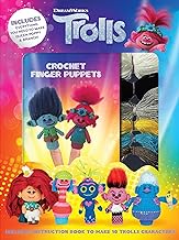 Trolls characters with this kit! Included are an 80-page instruction book with step-by-step directions and full-color photos, a crochet hook, safety eyes, stuffing, a metal tapestry needle, and all the yarn you'll need to create finger puppets of Queen Poppy and Branch. You’ll also find instructions for creating eight other characters from DreamWorks: Trolls World Tour using your own materials.