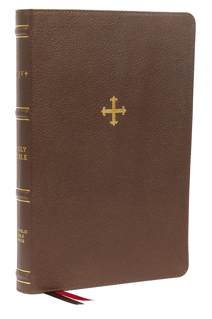 NRSV, Catholic Bible, Thinline Edition, Genuine Leather, Brown, Comfort Print: Holy Bible Leather Bound